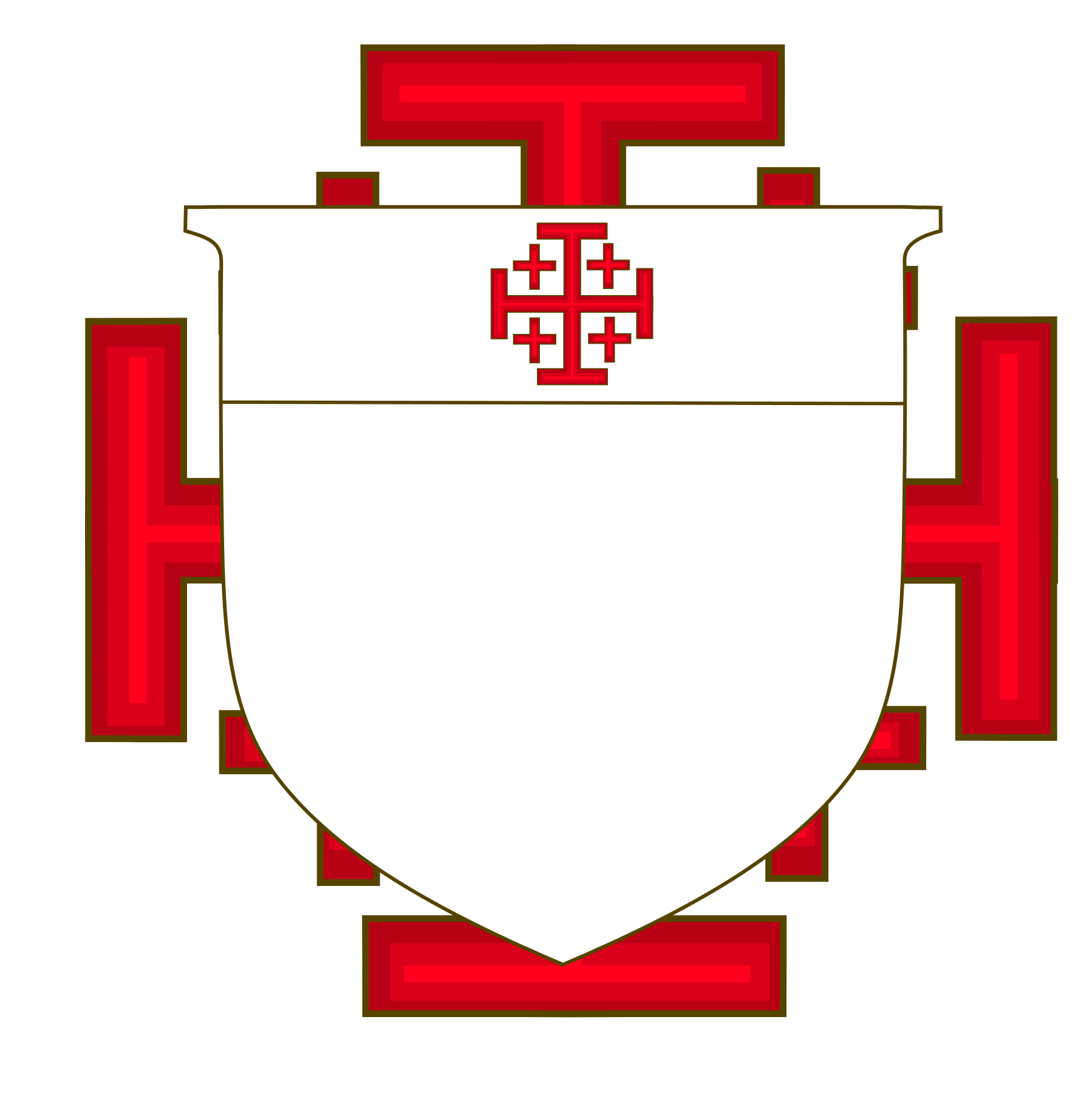 Below you can find other variations of the Jerusalem Cross. It is preferred, if a member is using the Jerusalem Cross as a personal emblem that the cross is coloured red, as this recalled the 5 wounds of Our Lord Jesus Christ.